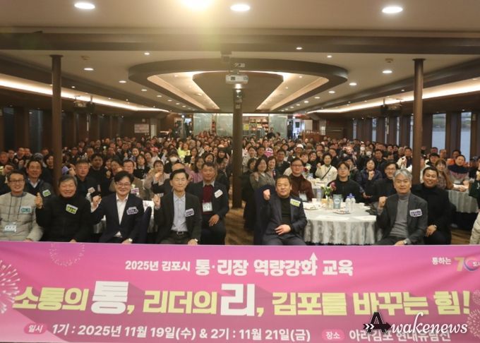 어웨이크뉴스 오경하 기자 | 시민 목소리로 김포 미래를 그려나가고 있는 김포시가 김포 관내 통리장 575명과 함께 하는 소통의 장을 열어, 통리장 의견을 경청하고 역할 지원에 나섰다. 시는 19일과 21일, 양일에 걸쳐 김포시 지역 리더인 통리장을 대상으로 ‘2025년 통·리장 역량강화 교육’을 실시했다고 밝혔다.