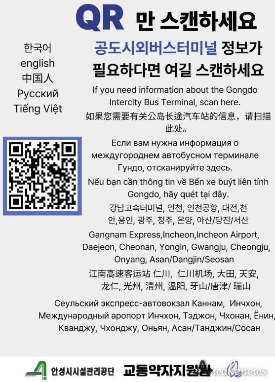 어웨이크뉴스 오경하 기자 | 안성시시설관리공단 교통약자이동지원센터은 교통약자 지원을 위한 특수교통수단 배차 및 운영 서비스를 담당하고 있다. 그러나 사무실이 터미널 내부에 위치함에 따라 일반 버스 이용 관련 문의가 반복적으로 발생해 민원 혼선이 이어지고 있다. 이에 공단은 이러한 불편을 해소하고 정확한 정보를 제공하기 위해 ‘포용교통 안내서비스(QR 안내 시스템)’를 도입했다고 밝혔다.