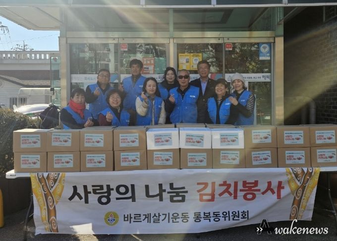 어웨이크뉴스 오경하 기자 | 평택시 통복동 바르게살기위원회는 지난 20일과 21일 이틀간 ‘사랑의 김장 나눔’ 행사를 개최하고 관내 취약계층에 김장 김치 150㎏을 전달했다.