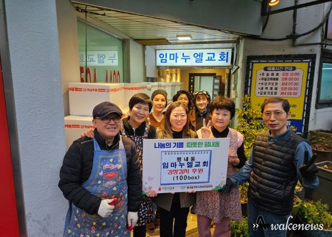 어웨이크뉴스 오경하 기자 | 남양주시는 25일 평내동 임마누엘교회가 지역 내 어려운 이웃들의 따뜻한 겨울나기를 돕기 위해 김장김치 7kg 100박스를 전달했다고 밝혔다.