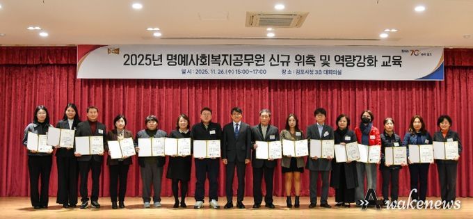 어웨이크뉴스 오경하 기자 | 김포시는 지난 26일 통·리장과 지역사회보장협의체 위원 등 지역 주민 181명을 신규 명예사회복지공무원으로 위촉했다. 이 중 대표 15명에게 위촉장을 수여했으며, 약 100명을 대상으로 역량 강화 교육도 함께 진행했다.