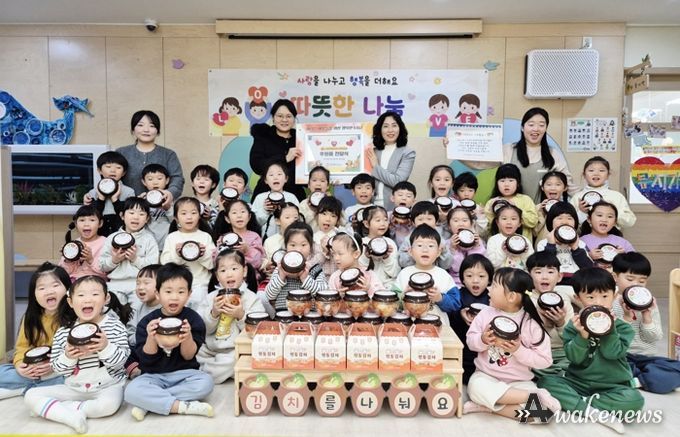 어웨이크뉴스 오경하 기자 | 동절기를 맞아 지난 11월 27일 시립은계아란트리어린이집과 시립은계제일풍경채어린이집 아동들이 직접 담근 김장김치 총 100개(각 50개)를 시흥시북부노인복지관의 고령자복지주택 어르신들에게 전달하며, 지역사회 어르신을 위한 세대 간 따뜻한 나눔을 실천했다.