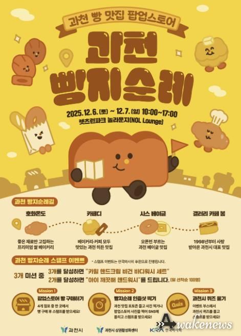 어웨이크뉴스 오경하 기자 | 과천시는 12월 6일과 7일 이틀간 렛츠런파크 서울 한국경마 100년 기념관 내 놀라운지(NOL Lounge)에서 ‘과천 빵 맛집 팝업스토어-과천 빵지순례’를 운영한다고 1일 밝혔다.
