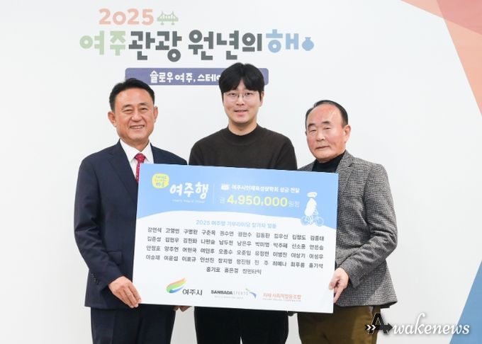 어웨이크뉴스 오경하 기자 | 지난 2일 ㈜산바다스포츠와 치재사회적협동조합은 (재)여주시인재육성장학회에 장학금 495만 원을 기탁했다.