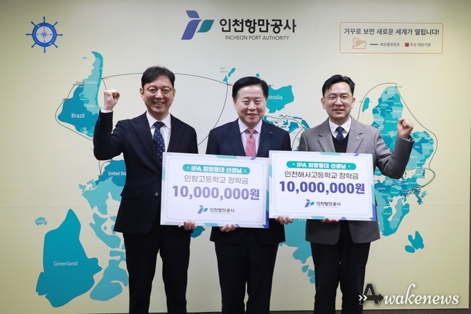 인천항만공사는 미래 지역·해양인재 육성과 지역사회 공헌을 위해 인항고등학교와 인천해사고등학교에 장학금 2천만원을 전달했다고 3일 밝혔다.