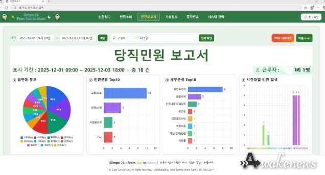 어웨이크뉴스 오경하 기자 | 김포시가 야간·공휴일 민원 대응 업무에 웹 기반 자동화 시스템을 도입하며 AI 기반 행정혁신에 속도를 내고 있다. 김포시는 당직민원처리시스템 ‘Gimpo 24 : From Sun To Moon’을 외주 없이 전면 2개월간 자체 개발하여 지난 1일 부터 정식 운영에 들어갔다고 밝혔다.