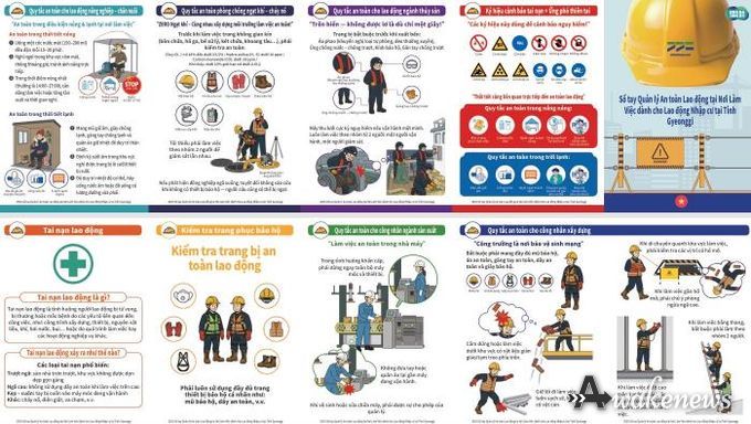 자료는 중국어, 베트남어, 네팔어 등 이주노동자 주요 유입국 언어를 포함해 총 10개 언어로 구성됐다. 3편의 안전교육 영상과 함께 기본 작업 안전수칙부터 위험 상황별 대응 요령까지 산업현장에서 바로 적용할 수 있는 실무 중심 내용으로 제작했다.