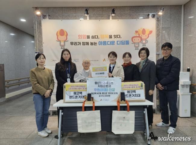 어웨이크뉴스 오경하 기자 | 화성특례시가 지난 16일 화성시아르딤복지관에 2025년 자원순환실천 시민봉사활동으로 마련된 에코백·핸드폰거치대와 재활용나눔장터 활동으로 마련된 기부금 40만 원을 전달했다.