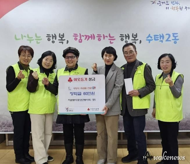 어웨이크뉴스 오경하 기자 | 구리시 수택2동 행정복지센터는 지난 18일 구리자원봉사홍보단봉사회로부터 저소득 청소년들의 안정적인 학업 지원을 위한 장학금 60만 원을 전달받았다고 밝혔다.
