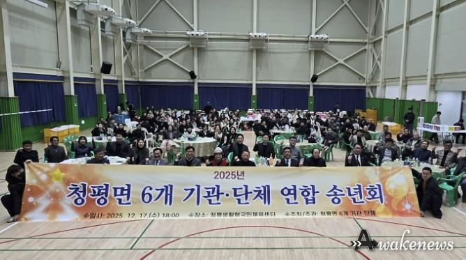 어웨이크뉴스 오경하 기자 | 가평군 청평면은 지난 17일 청평생활형국민체육센터에서 ‘2025년 청평면 6개 기관·단체 연합 송년회’를 개최하고 한 해를 마무리하는 시간을 가졌다.