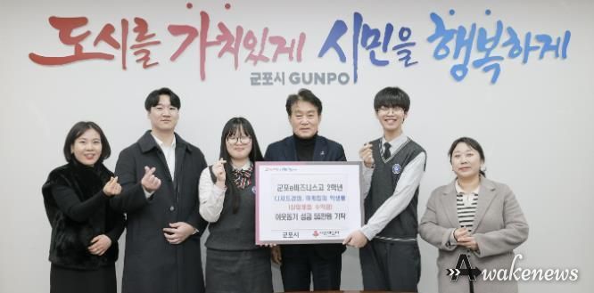 어웨이크뉴스 오경하 기자 | 군포e비즈니스고등학교 학생들이 마케팅 전공수업을 통해 얻은 수익금을 군포시에 기탁했다.