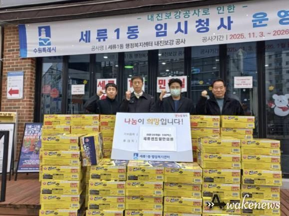 이번 나눔은 겨울철 경제적 어려움을 겪고 있는 취약계층 이웃들에게 작은 힘이 되고자 마련됐으며, 기탁된 라면은 세류1동 내 취약계층 및 도움이 필요한 가구에 전달될 예정이다.