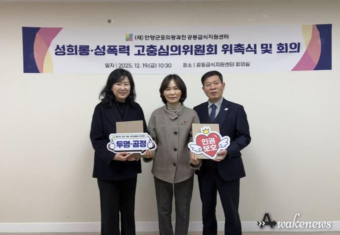 어웨이크뉴스 오경하 기자 | (재)안양군포의왕과천 공동급식지원센터는 지난 19일 재단 내 성희롱성폭력 사건에 대한 공정하고 전문적인 처리체계를 구축하기 위해 ‘성희롱·성폭력 고충심의위원회’를 구성하고 위촉식을 개최했다고 22일 밝혔다.