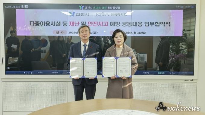어웨이크뉴스 오경하 기자 | 과천시는 지난 19일 한국마사회와 ‘재난 안전 강화를 위한 공동대응’ 업무협약을 체결했다고 22일 밝혔다. 이번 협약은 재난 발생 시 신속한 대응 체계를 마련하고, 지역사회 안전 관리 역량을 높이기 위해 추진됐다.