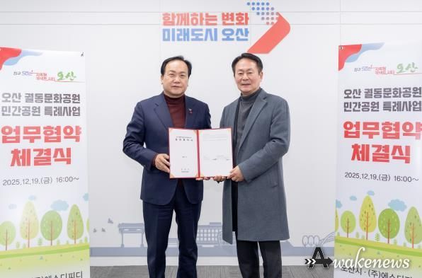 어웨이크뉴스 오경하 기자 | 오산시는 12월 19일 오산시청에서 궐동문화공원 민간공원조성 특례사업의 원활한 추진을 위해 사업 시행자인 ㈜에스디피디와 협약을 체결했다.