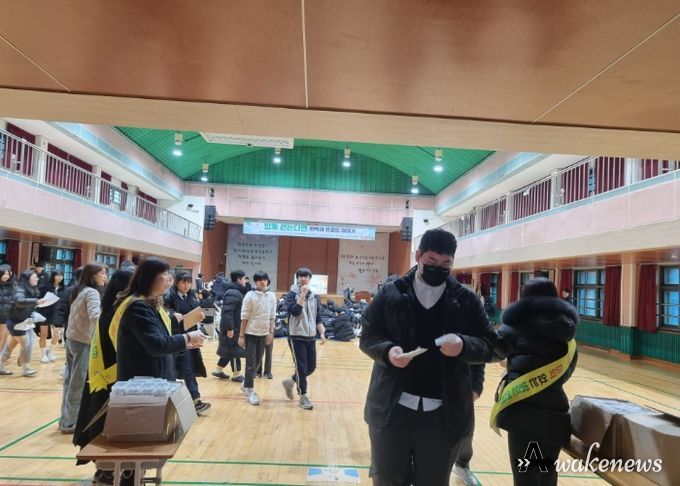 어웨이크뉴스 오경하 기자 | 경기도연천교육지원청은 12월 19일, 전곡중학교에서 학생 약 550명을 대상으로 교육환경보호구역 제도 및 마약 예방 홍보 캠페인을 실시했다.