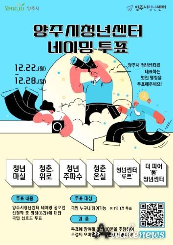 양주시 관계자는 “청년센터 이전과 확대를 계기로 청년과 시민 모두에게 친근하고 의미 있는 공간 이름이 선정될 수 있도록 많은 관심과 참여를 바란다”고 말했다.