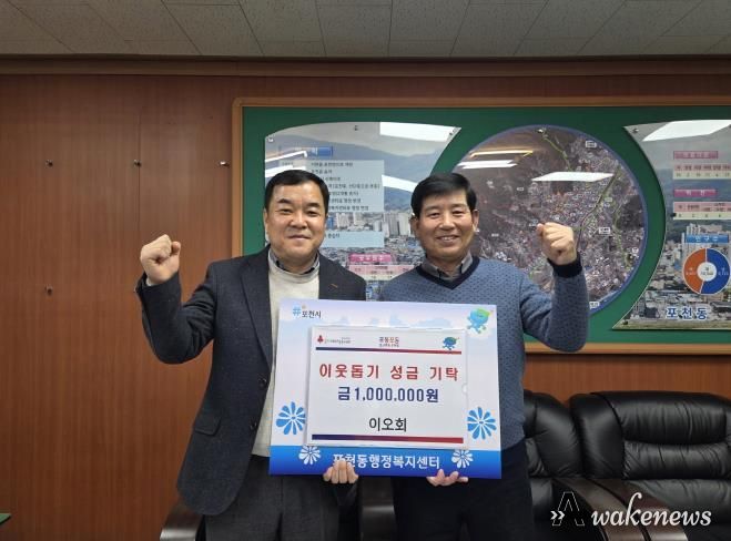 어웨이크뉴스 오경하 기자 | 포천동 행정복지센터는 지난 22일 이오회가 포천동 내 어려운 이웃을 돕기 위해 성금 100만 원을 기탁했다고 밝혔다.