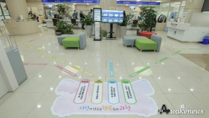 어웨이크뉴스 오경하 기자 | 과천시는 시청을 방문하는 시민들의 민원 이용 편의를 높이기 위해 시청 1층 민원실 바닥에 ‘바닥 안내선’을 새롭게 부착했다.