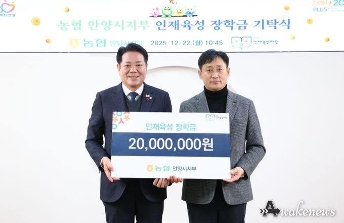 어웨이크뉴스 오경하 기자 | 안양시 인재육성재단이 지난 22일 농협 안양시지부로부터 인재육성을 위한 장학금 2천만 원을 기탁받았다고 23일 밝혔다.