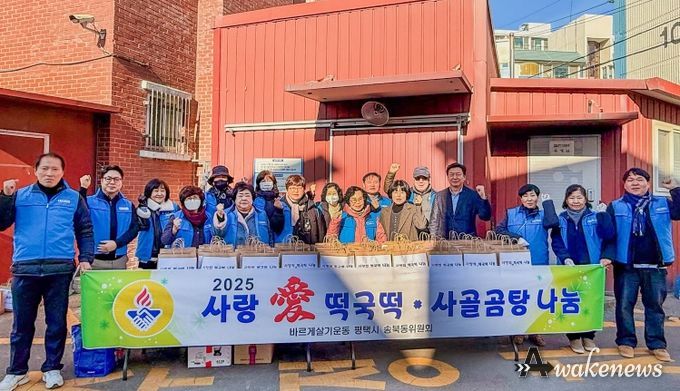 어웨이크뉴스 오경하 기자 | 평택시 송북동 바르게살기위원회는 지난 22일 설 명절을 앞두고 송북동 내 취약계층과 경로당 어르신들에게 떡국떡과 사골곰탕 나눔 행사를 진행했다.