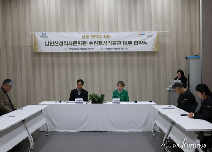 어웨이크뉴스 오경하 기자 | 남한산성역사문화관과 수원화성박물관은 2025년 12월 23일, 남한산성역사문화관에서 세계유산 성곽의 연구·보존·활용을 위한 업무협약(MOU)을 체결했다.