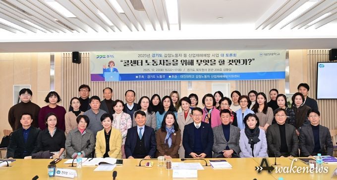 어웨이크뉴스 오경하 기자 | 경기도는 23일 경기도 북부청사 상황실에서 ‘2025년 경기도 감정노동자 등 산업재해 예방’ 사업 성과 공유 및 토론회를 열고 한 해 동안 추진해 온 감정노동자 보호 사업에 대한 현장의 목소리를 청취했다.