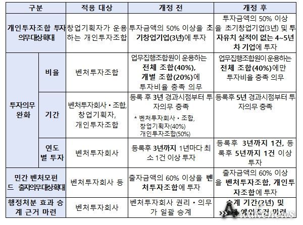 이를 통해 시장 상황을 반영하여 보다 유연한 투자 전략 수립이 가능해질 전망이다. 특히 초기투자 생태계의 주축을 이루는 개인투자조합과 창업 기획자의 활동 반경이 한층 넓어질 것으로 기대된다.
