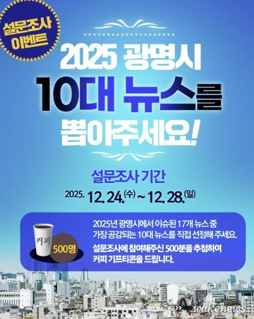 광명시가 24일부터 28일까지 ‘2025년 광명시 10대 뉴스’ 온라인 설문조사를 진행한다고 밝혔다.