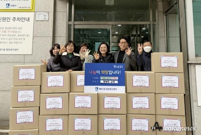 어웨이크뉴스 오경하 기자 | 매탄3동 행복한교회는 지난 23일 크리스마스를 맞아 지역 내 어려운 이웃을 위해 생필품 박스 20개를 매탄3동 행정복지센터에 기탁했다.