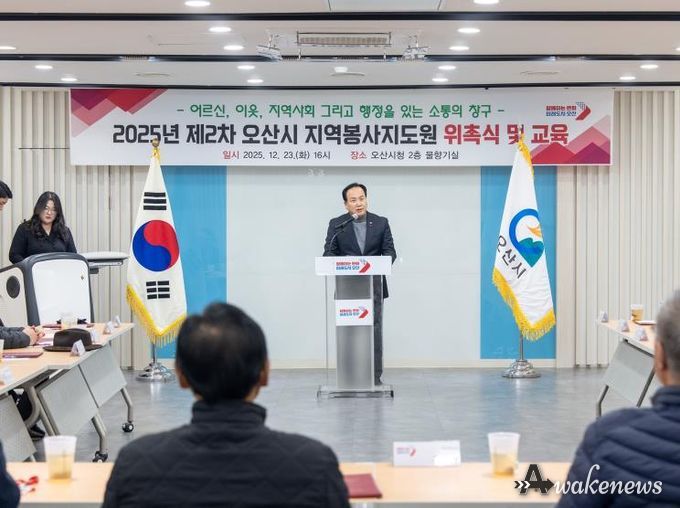 어웨이크뉴스 오경하 기자 | 오산시는 지난 23일 오산시청 물향기실에서 신규 경로당 회장을 대상으로 한 '2025년 지역봉사지도원 위촉식'을 개최했다고 밝혔다.