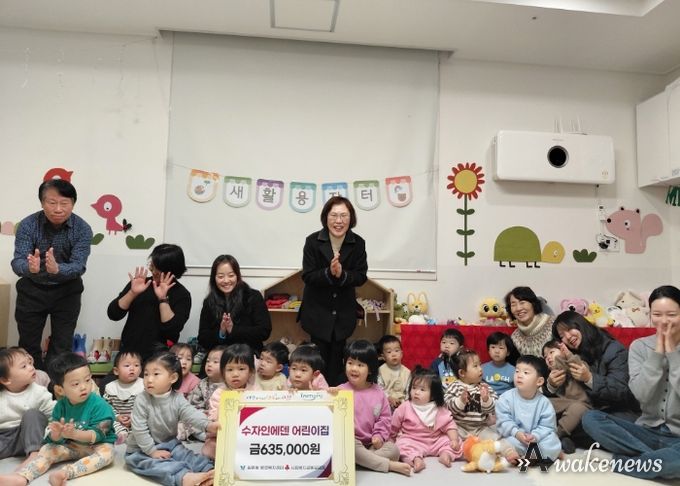 이번 성금은 ‘수자인에덴 어린이집’ 원생들과 학부모들이 자발적으로 참여해 마련한 것으로, 아이들과 함께 나눔의 의미를 실천하고자 하는 뜻이 담겼다.