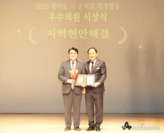 어웨이크뉴스 오경하 기자 | 포천시의회 연제창 부의장이 24일 동두천시 시민회관에서 열린 2025년 경기도시·군의회 의정활동 우수의원 시상식에서 지역현안해결 분야 우수의원으로 선정되는 영예를 안았다.