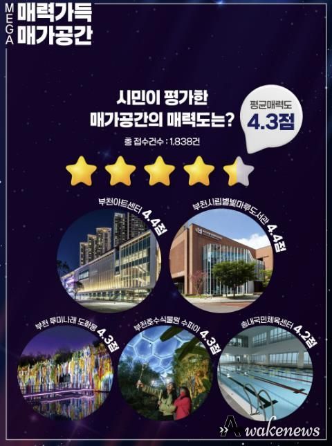 어웨이크뉴스 오경하 기자 | 부천시는 시민이 직접 참여한 ‘MEGA(매가) 공간’ 매력도 조사 결과를 발표했다. 이번 공모는 공간에 대한 시민의 체감도와 이용 경험을 파악하고, 이를 바탕으로 향후 공간 운영과 정책 방향을 설정하기 위해 실시됐다.