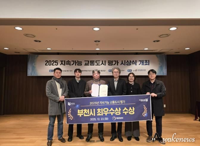 어웨이크뉴스 오경하 기자 | 부천시는 국토교통부가 주최하고 한국교통연구원이 주관한 ‘2025년 지속가능 교통도시 평가’에서 인구 30만 명 이상 단일도시 부문 최우수상을 받았다고 26일 밝혔다.