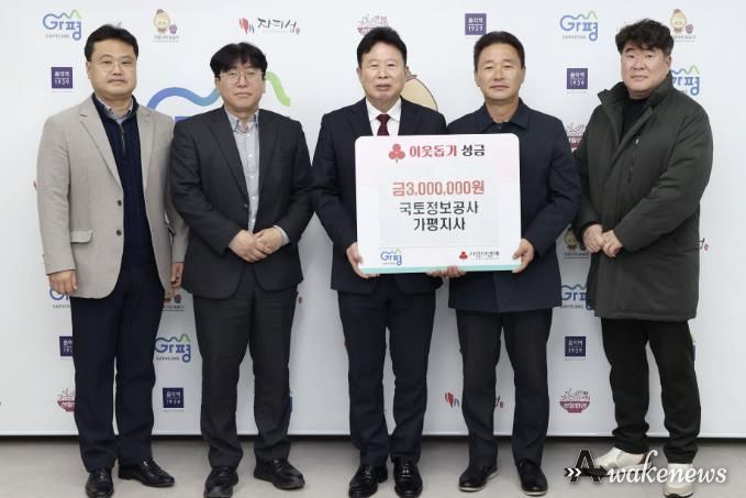 어웨이크뉴스 오경하 기자 | 한국국토정보공사 가평지사는 지난 24일 지역 내 어려운 이웃을 돕기 위한 성금 300만원을 가평군에 기탁했다.