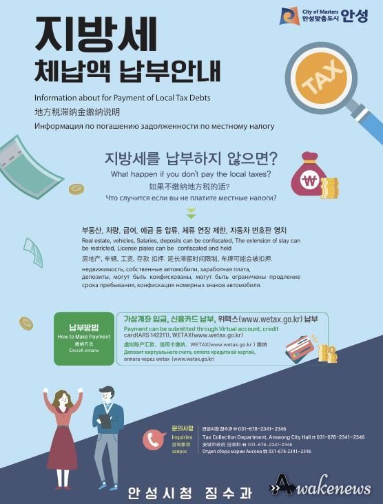 어웨이크뉴스 오경하 기자 | 안성시는 외국인 근로자의 지방세 체납액 징수를 위해 외국인 전용보험 압류를 추진한다고 밝혔다.