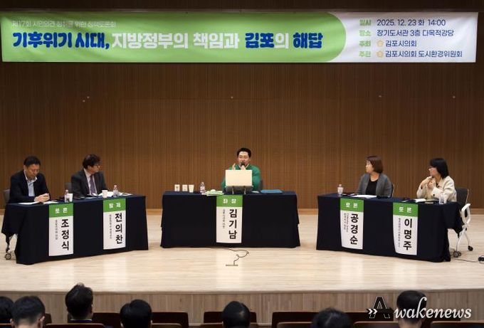 어웨이크뉴스 오경하 기자 | 김포시의회 도시환경위원회는 12월 23일 장기도서관에서 ‘기후위기 시대, 지방정부의 책임과 김포의 해답’을 주제로 제17회 정책토론회를 열었다.