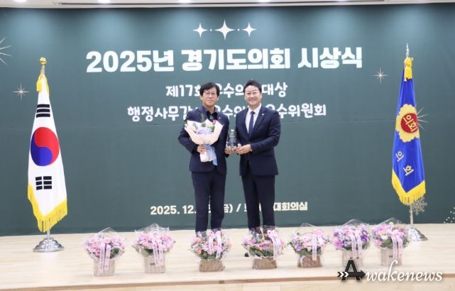 어웨이크뉴스 오경하 기자 | 경기도의회 안전행정위원회 국중범 의원(더불어민주당, 성남4)이 26일 경기도의회 대회의실에서 열린 '2025년 경기도의회 시상식'에서 제17회 우수의정대상을 수상했다.