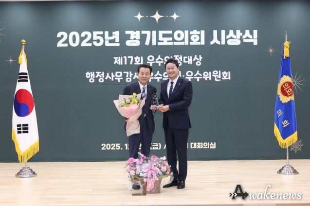 어웨이크뉴스 오경하 기자 | 경기도의회 김성수 의원(더불어민주당, 안양1)이 26일 경기도의회 대회의실에서 열린 대한민국시도의회의장협의회 주관 ‘제17회 우수의정대상’ 시상식에서 우수의정대상을 수상하며 임기 내내 쉼 없이 펼쳐온 도민 중심의 열정적인 의정활동 공로를 인정받았다.