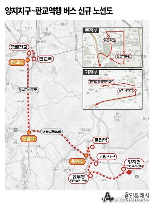 어웨이크뉴스 오경하 기자 | 용인 양지지구를 출발해 고림동과 둔전역을 거쳐 성남 판교역까지 운행하는 버스 노선이 확정됐다.