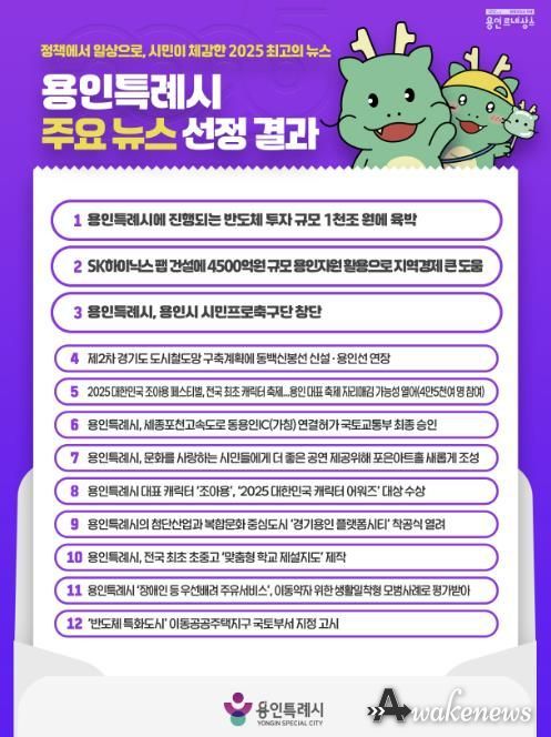 어웨이크뉴스 오경하 기자 | 2025년 용인특례시를 빛낸 최고의 뉴스로 '반도체 투자규모 1000조 원에 육박'이 뽑혔다.