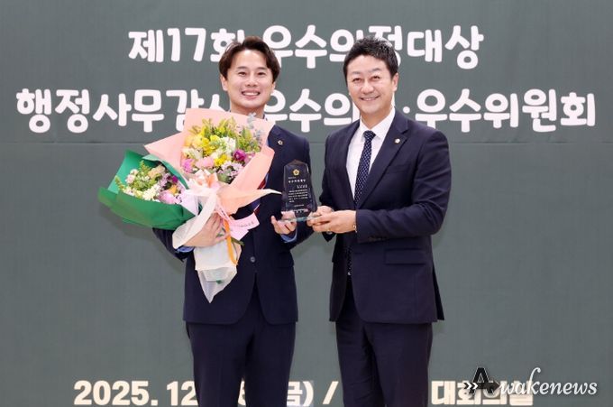 어웨이크뉴스 오경하 기자 | 경기도의회 문화체육관광위원회 황대호 위원장(더불어민주당, 수원3)이 지난 26일 경기도의회 대회의실에서 진행된 대한민국시도의회의장협의회 주관 ‘제17회 우수의정대상’ 시상식에서 우수의정대상을 수상했다.