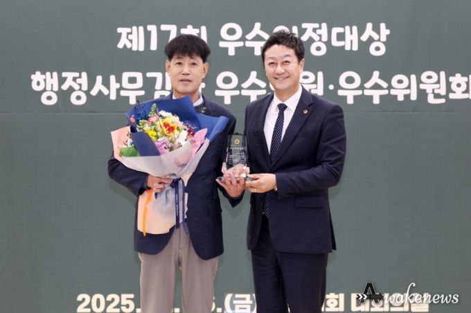 어웨이크뉴스 오경하 기자 | 경기도의회 건설교통위원회 양운석 의원(더불어민주당, 안성1)이 지난 26일 경기도의회 대회의실에서 개최된 대한민국시도의회 의장협의회 주관 ‘제17회 우수의정대상’ 시상식에서 우수의정대상을 수상했다. 이번 수상은 입법, 예산 심사, 행정 감시 등 지방의회의 핵심 기능을 균형 있게 수행하며 도민 삶의 질 개선에 기여한 점이 종합적으로 평가된 결과다.