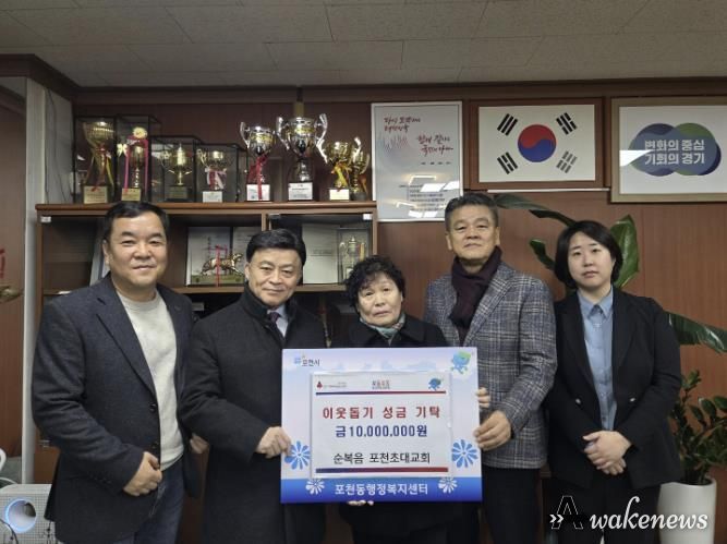 어웨이크뉴스 오경하 기자 | 포천동 행정복지센터는 지난 29일, 순복음 포천초대교회에서 포천동 지역사회보장협의체에 성금 1,000만 원을 기탁했다고 밝혔다.