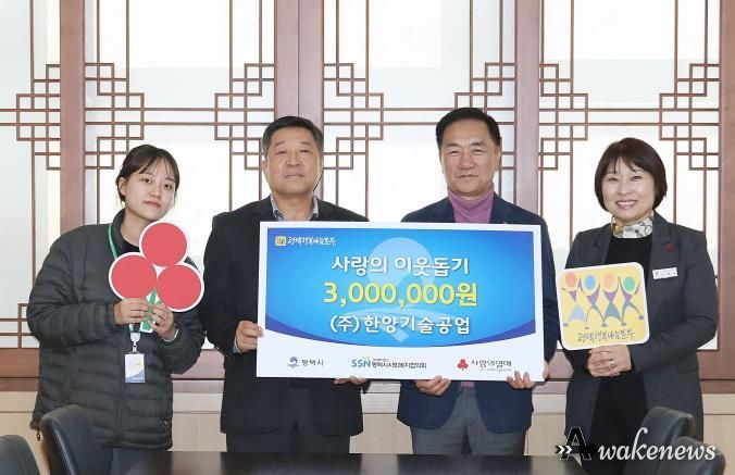 어웨이크뉴스 오경하 기자 | 평택시 서탄면에 있는 ㈜한양기술공업은 관내 취약계층 지원을 위한 성금 300만 원을 평택시청 대외협력실에서 평택행복나눔본부에 전달했다.