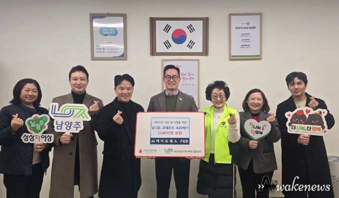 어웨이크뉴스 오경하 기자 | 남양주시는 30일 다산행정복지센터에서 ㈜에이트랙스 에프앤비가 지역 아동을 위한 과채주스 432박스를 전달했다고 밝혔다.