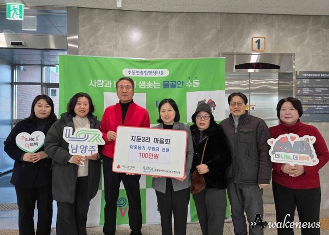 어웨이크뉴스 오경하 기자 | 남양주시는 30일 수동면 지둔3리 마을회가 지역 내 어려운 이웃을 위한 후원금 100만 원을 경기사회복지공동모금회를 통해 수동면 지역사회보장협의체에 지정 기탁했다고 밝혔다.