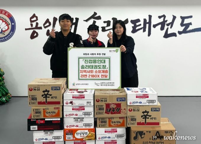 어웨이크뉴스 오경하 기자 | 남양주시 지난 29일 진접읍 소재 진접용인대송라태권도장이 라면 21박스를 북부희망케어센터에 전달했다고 30일 밝혔다.