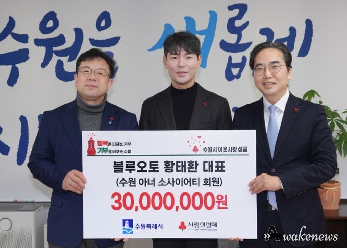 어웨이크뉴스 오경하 기자 | 황태환 블루오토 대표가 12월 31일 “취약계층 아동 지원에 사용해달라”며 3000만 원을 수원시에 기부했다.